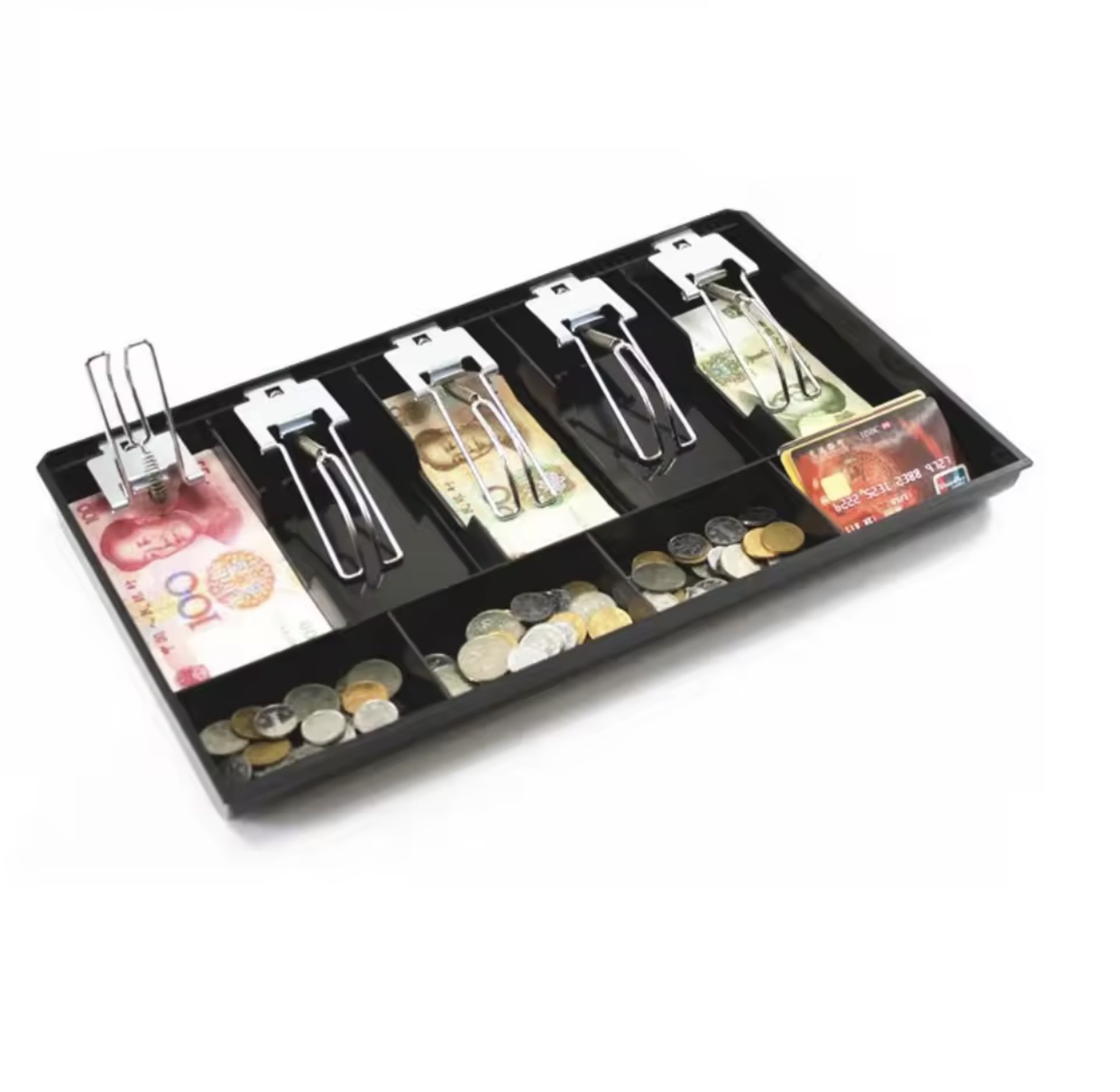 Если вам нужен надежный лоток для денег с металлическими лапками, данная модель станет отличным выбором. Она сочетает удобство, функциональность и долговечность, помогая организовать кассовое пространство и упростить работу кассира.
